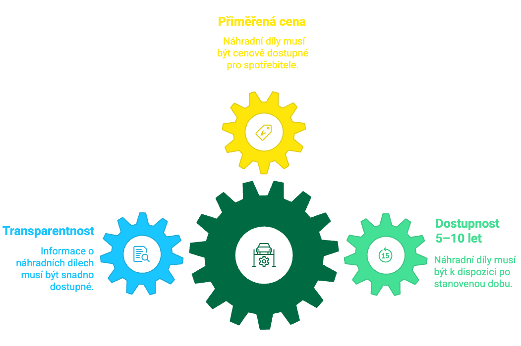 Za přiměřené ceny musí být nabízeny i náhradní díly, a to po dobu 5 až 10 let v závislosti na druhu výrobku. Současně mají výrobci také musí na svých internetových stránkách zveřejnit seznam dostupných náhradních dílů a jejich orientační ceny.